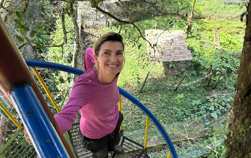 Après l’éprouvante nuit de la cérémonie de l’ayahuasca nous reprenons nos esprits avec la visite d’une réserve d’animaux victimes de trafics, dans la petite ville amazonienne de Puyo. Ascension et balançoire sur un arbre immense qui apaise nos sens.