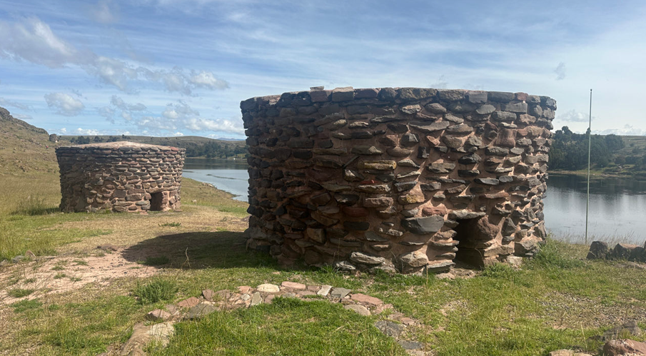 Visite du site archéologique de Sillustani. Il s’agit d’une nécropole antérieure aux incas. À cet endroit étaient enterrés les momies des notables et leur famille. entre 1200 et 1440, dans des tours funéraires spectaculaires. Le site installé à 4000 mètres d’altitude autour d’un superbe lac a quelque chose d’envoûtant. Nous poursuivons la route sur l’Altiplano péruvien, nous nous arrêtons en chemin pour aller à la rencontre d’une communauté quechuas qui procédait au partage des champs agricoles. Nous passons un col à 4800 mètres ça commence à devenir sérieux, les paysages sont époustouflants.