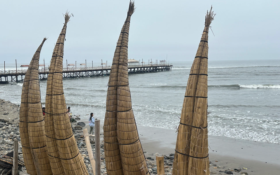Huanchaco est un port de pêche à quelques kilomètres de Trujillo. Il est célèbre pour ses caballitos de totora. Ce sont de frêles embarcations de roseaux utilisées par les pêcheurs locaux qui n’hésitent pas à affronter les vagues du Pacifique. Nous profitons de ce lieu pour nous reposer quelques heures.