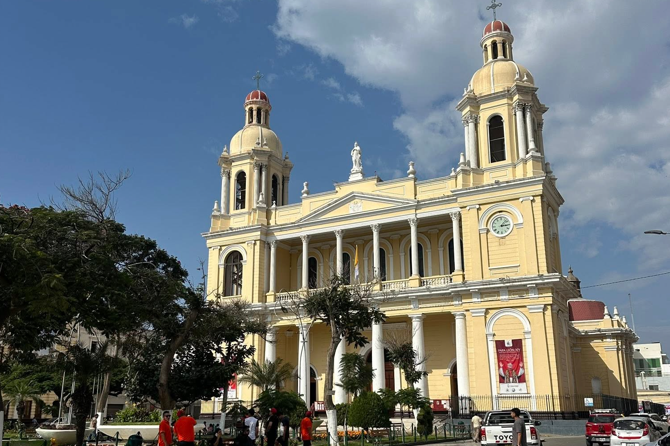 Ce sont nos derniers jours au Pérou 🇵🇪… Pour la circonstance nous sommes allés sur les traces du nouveau Pape 🇻🇦 dans le diocèse de Chiclayo dont il était l’Evêque. Ici la Cathédrale comme la Mairie affichent des portraits géants de Léon XIV. L’œcuménisme religieux régne à défaut de notre chère laïcité républicaine. Nous découvrons plus tard un nouveau site archéologique exeptionnel celui de la tombe du Seigneur de Sipan et de son trésor. Ce souverain règnait dans les années 250 à 300 après Jésus-Christ, il appartenait à la civilisation Moche. Le trésor avec lequel il a été enterré et d’une richesse incroyable il est du même niveau que la tombe égyptienne de Toutankhamon. Il faut savoir que si la civilisation Inca est la plus connue, c’est parce qu’elle est la plus récente et que c’est celle que les conquistadores ont découverte lorsqu’ils sont arrivés en Amérique du Sud. Beaucoup d’autres civilisations ont précédées les Incas comme les Chavin, les Moche, les Tiwanaku ou les Chimú.